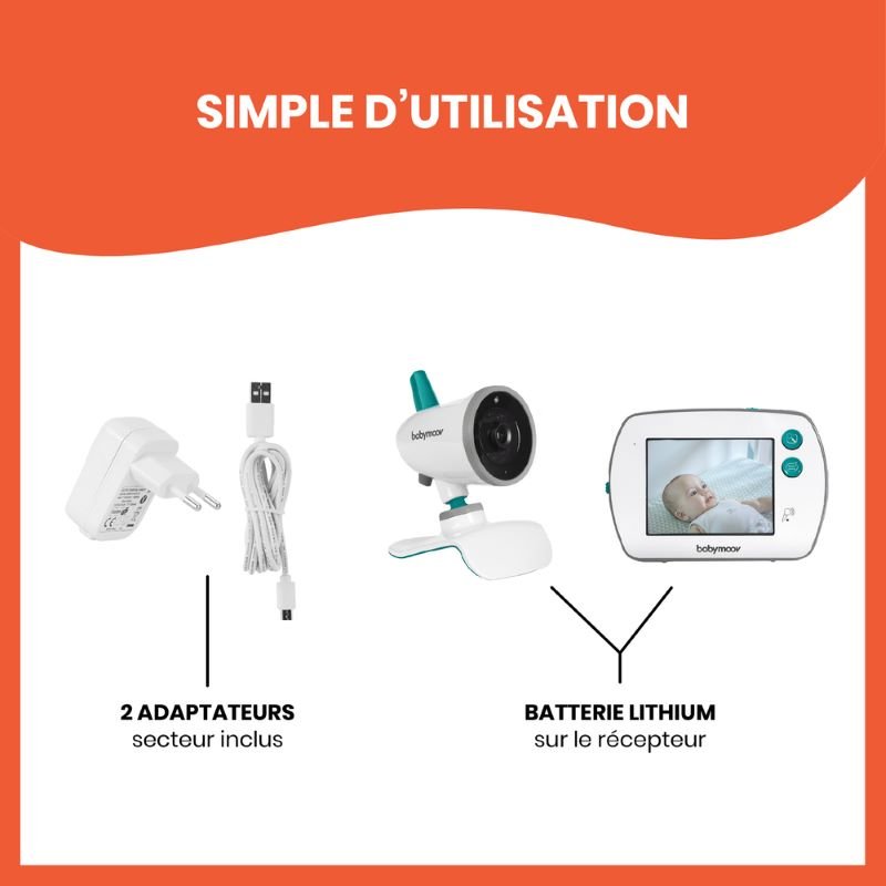 - Babyphone ultra-compact et simple d’utilisation équipé du système Plug & Play avec sélection automatique des canaux