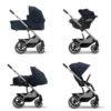 - Compatible avec une coque bébé de Cybex et GB à l’aide d’adaptateurs (vendue séparément)
