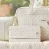 Nécessaire pour langer pliable pratique et compact en forme de sac à main, indispensable pour prendre soin de votre bébé à l’extérieur de la maison. Comprend une poche zippée pour les lingettes ou les crèmes.