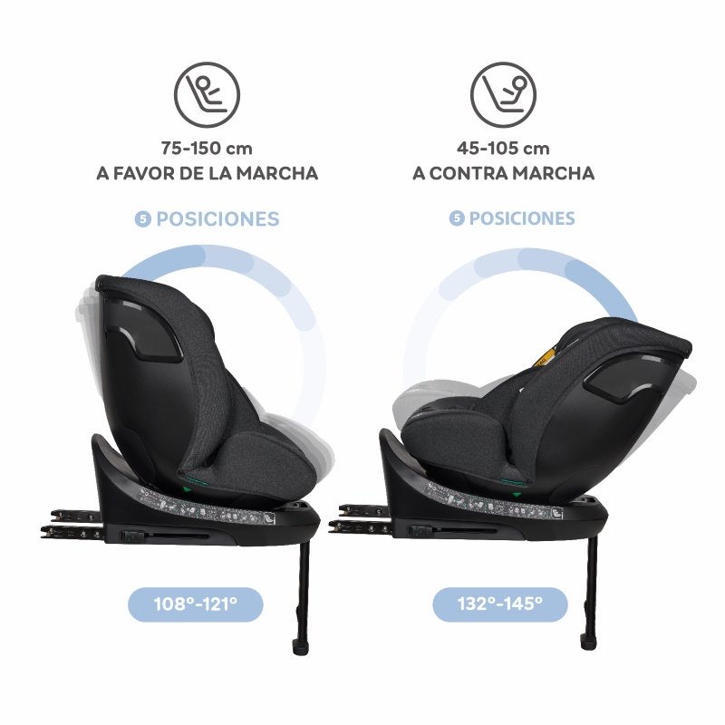 La chaise DENVER est entièrement rotative à 360° , ce qui facilite le placement et le retrait du bébé, ainsi que le changement entre la position orientée vers l’arrière et vers l’avant en toute simplicité.